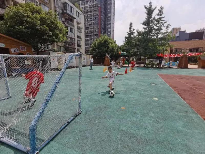 在成都錦西幼兒園,一組正在做足球準備活動的孩子為一個問題爭論起來:“用腳尖踢球還是腳背踢球?”“用腳尖!”“不對,只有射門才用腳尖”……